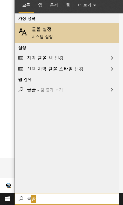 검색에 글꼴을 검색해주면 글꼴설정으로 바로 가실 수 있습니다.